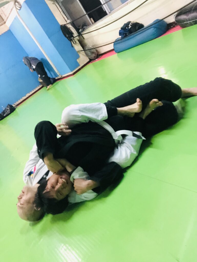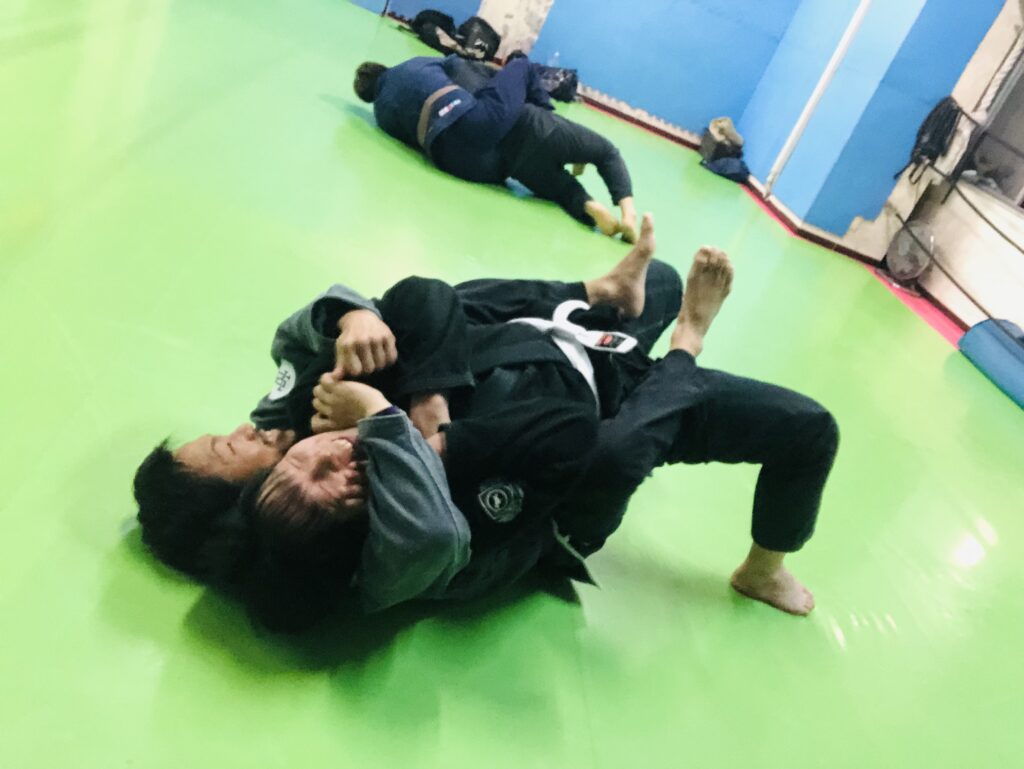 「サンディエゴのファビオ・サントスという黒帯のブラジル人を先生に、柔術の稽古をはじめた」
